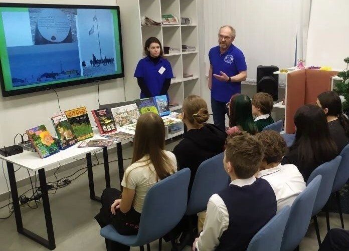 Так, Виктор Степанович Костюк, который работает в заповеднике с 2020 года и уже провёл здесь не одну зимовку, во время отпуска встретился с юными читателями детской библиотеки им. А. П. Гайдара города Туапсе.